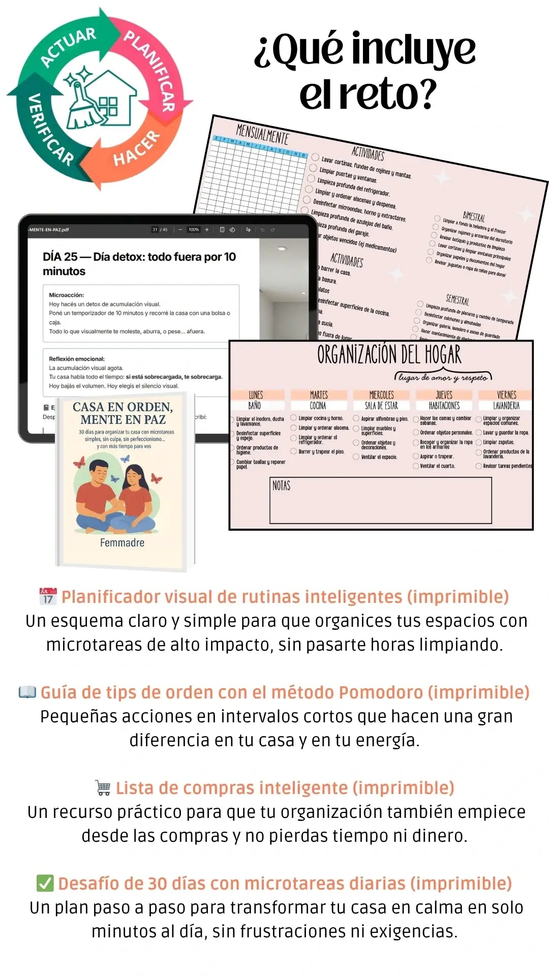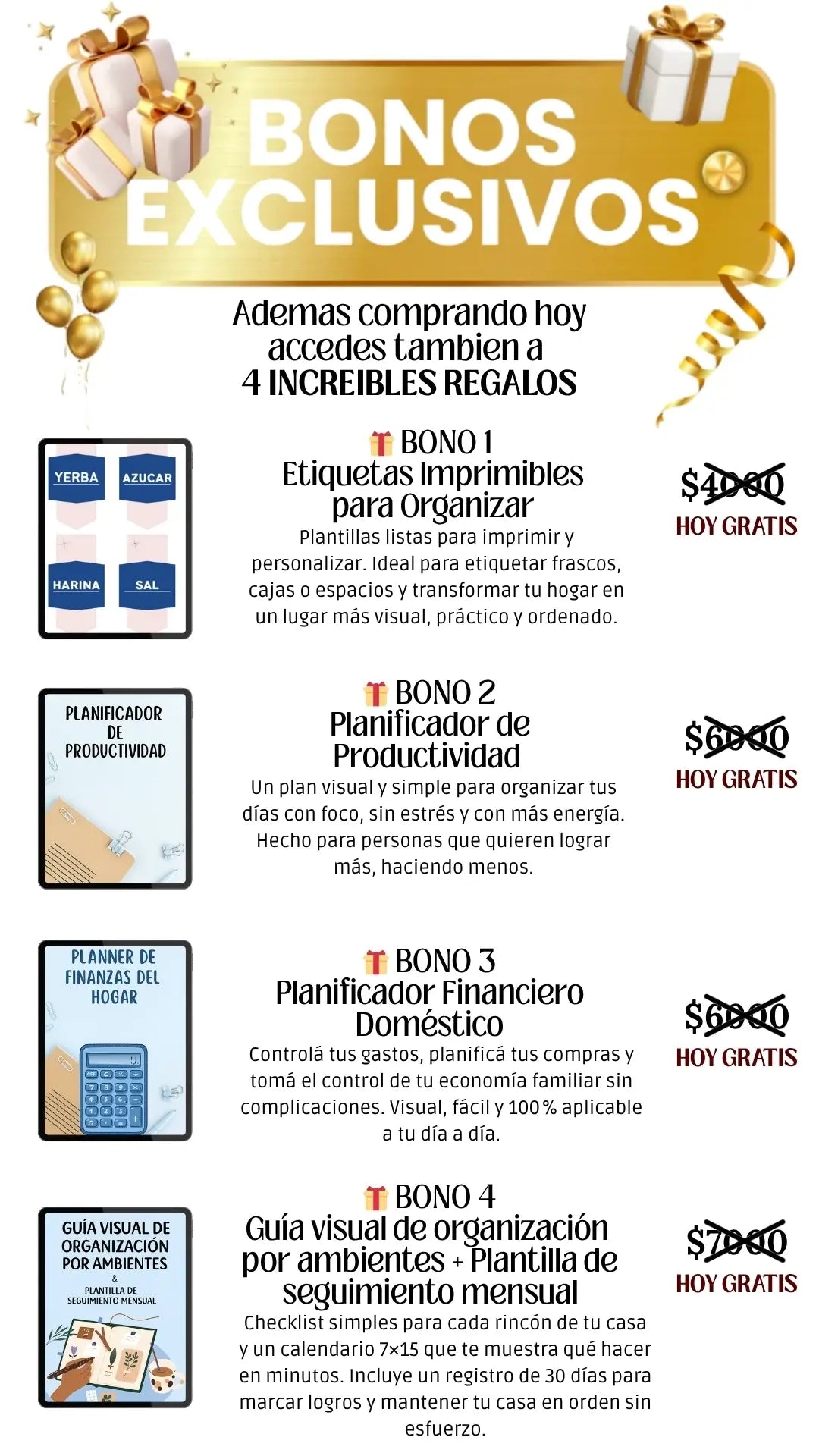 ¡Sí! No necesitás ser experta en organización. Este método está hecho para empezar desde cero y ver cambios reales sin perfeccionismo ni presión.