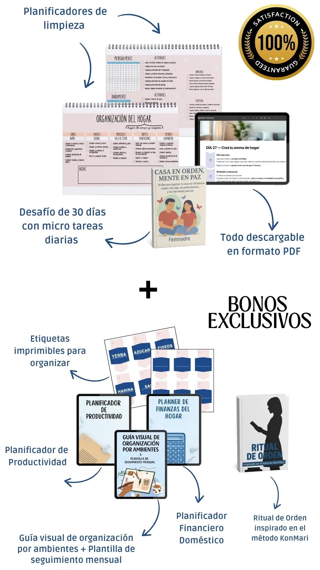 Confío tanto en este sistema que si sentís que no te ayuda a ordenar tu casa, tu mente o tu rutina, podés pedirme el reintegro total dentro de los 7 días desde tu compra.